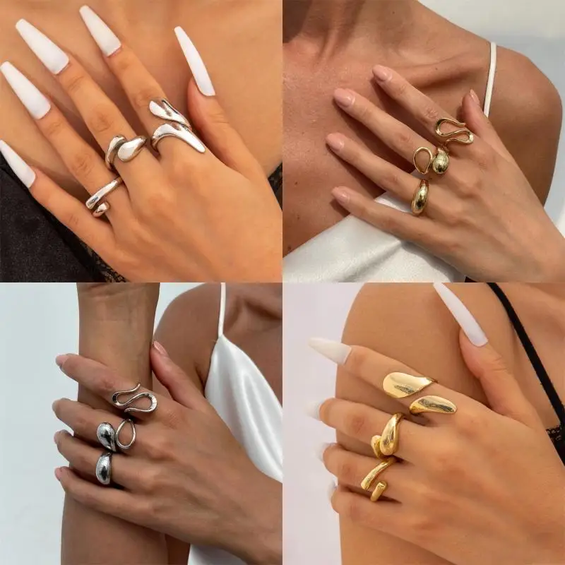 3/5 Pieces Of Minimalist, Fashionable, Irregular Gold Women's Ring Set, Finger Ring, Fashionable Girl Jewelry Gift