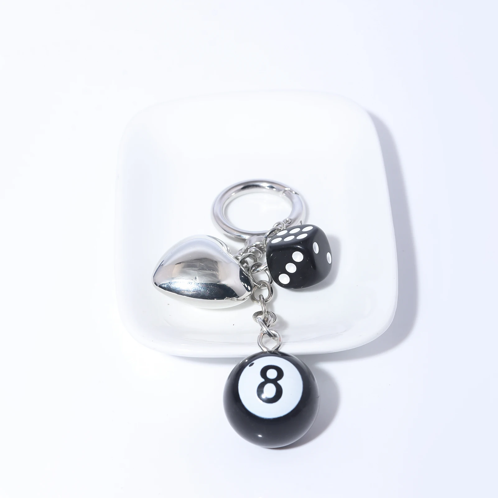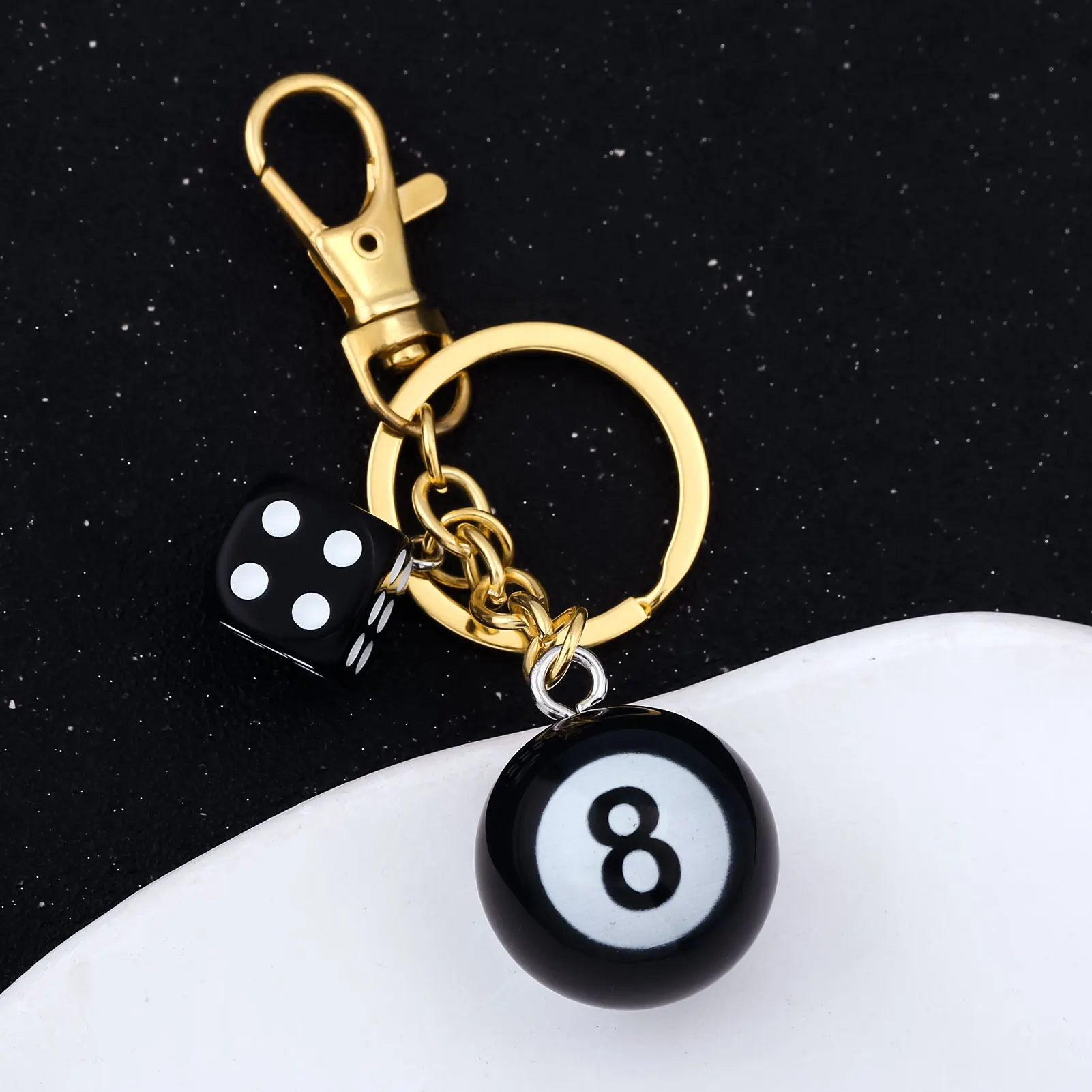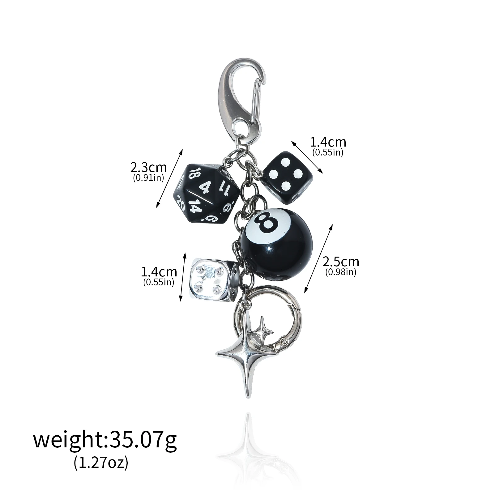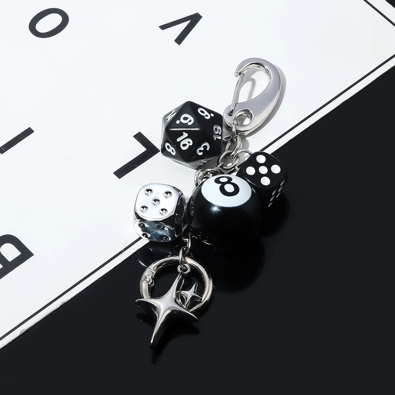 4PCS/lot Black Dice No. 8 Billiards Keychain Y2K Pink Lucky Dice Starburst Pendant Bag Charms Hangings Punk Ornament Accessories