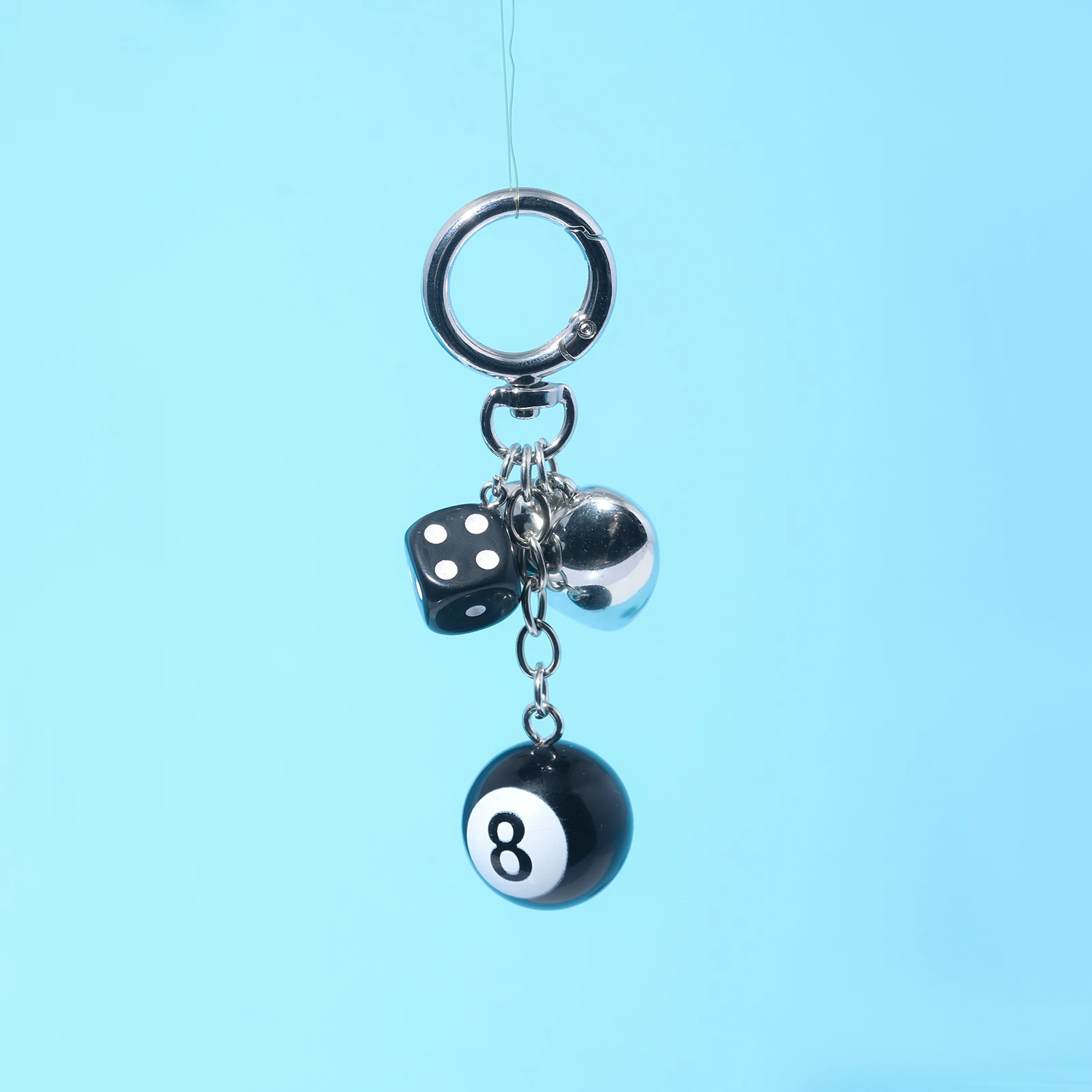 Model Number: Black Dice No. 8 Billiards Keychain Y2K Pink Lucky Dice Starburst