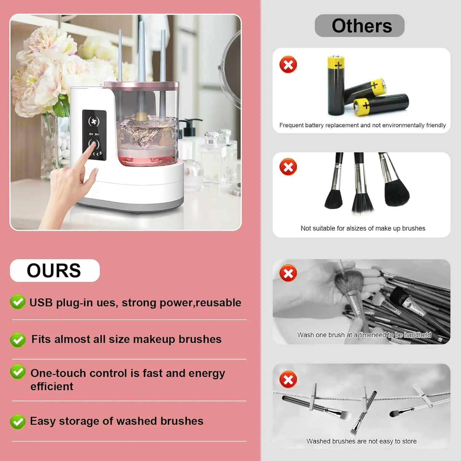 Electric Makeup Brush Cleaner and Dryer,3 in 1 Multi-Functional Efficient Automatic Cosmetic Cleaning for All Size Beauty Brush