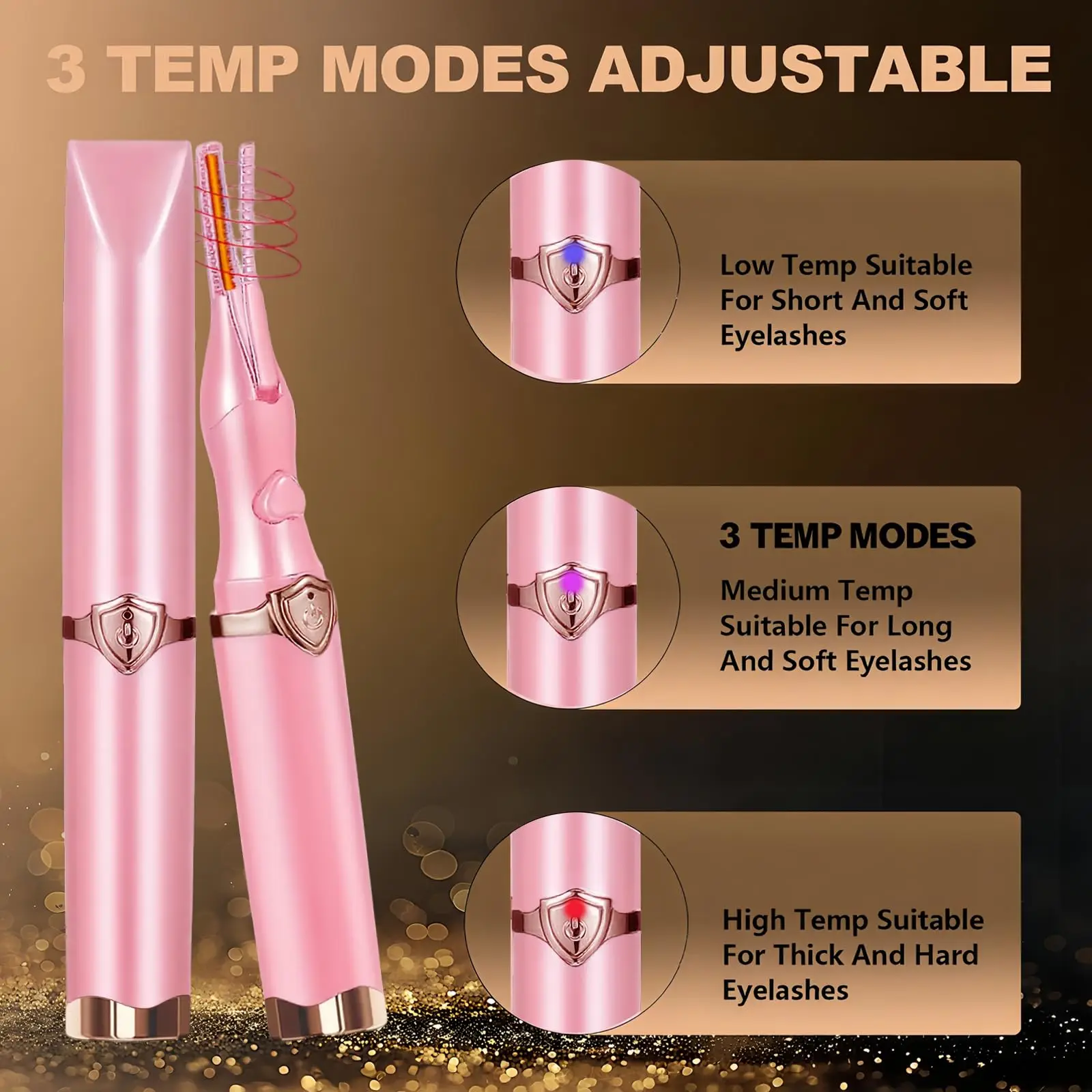 Heated Eyelash Curler 2-in-1 Clip-Type Design 3 Temperature Modes USB Rechargeable Electric Eyelash Curler for Women Girls Gift