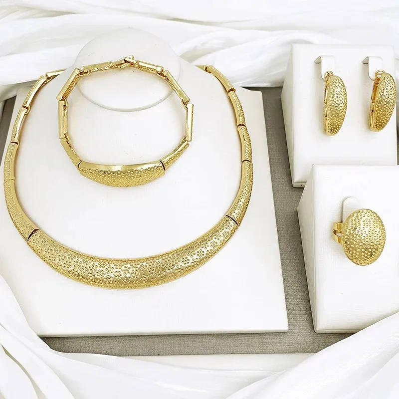Minimalist Design Brazil Gold Color Jewelry Set For Women High Quality Jewelry Gold Plated Necklace Bracelet Earrings And Ring