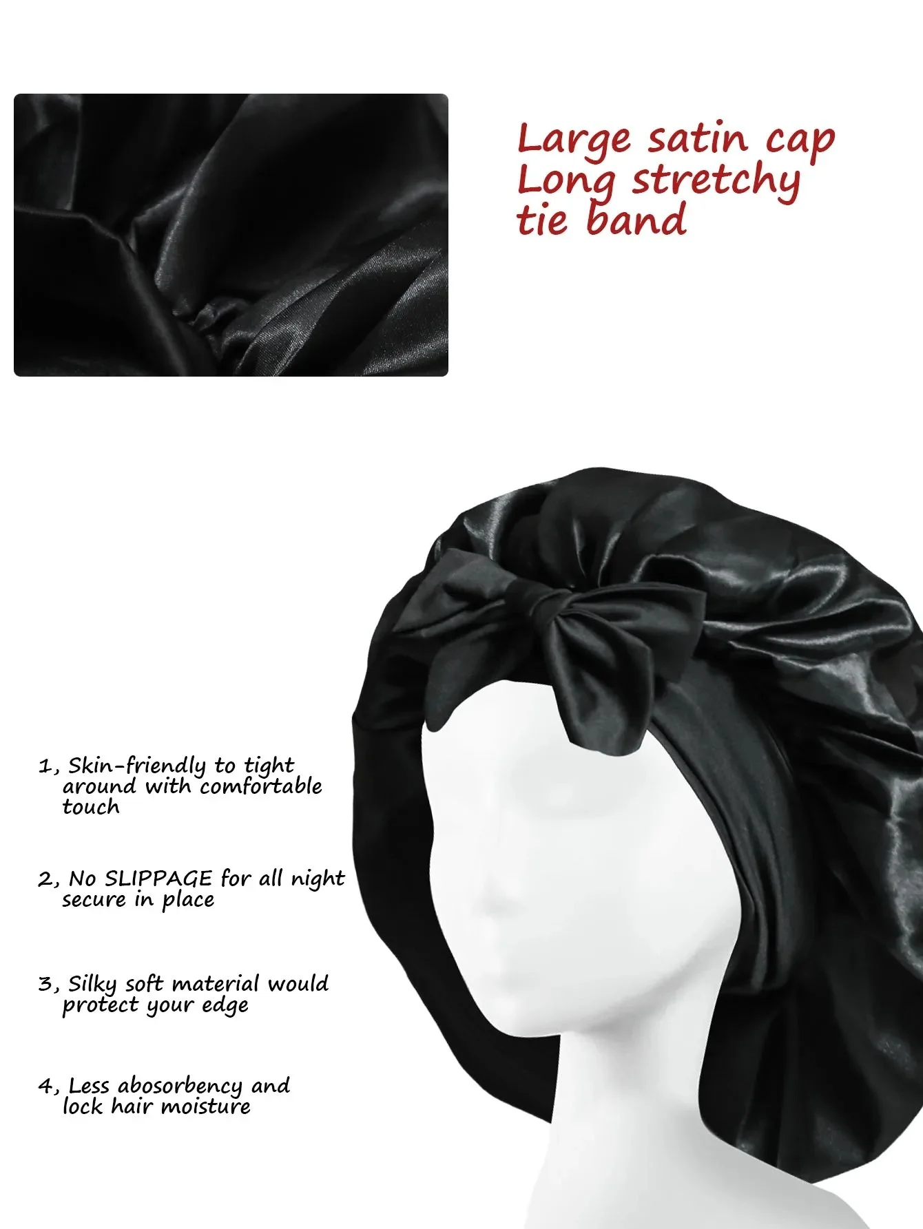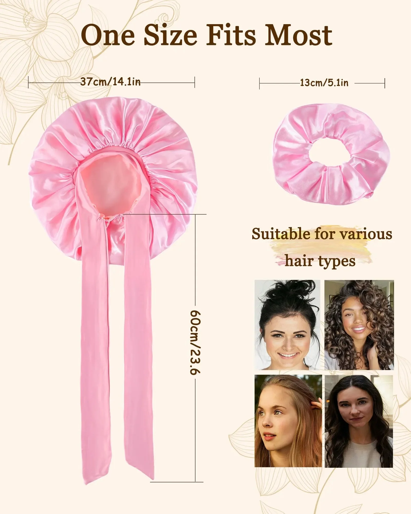 Satin Silk Hair Bonnet | Adjustable Tie Band | Sleep Bonnet for Women Men | Unisex Protective Headwear
