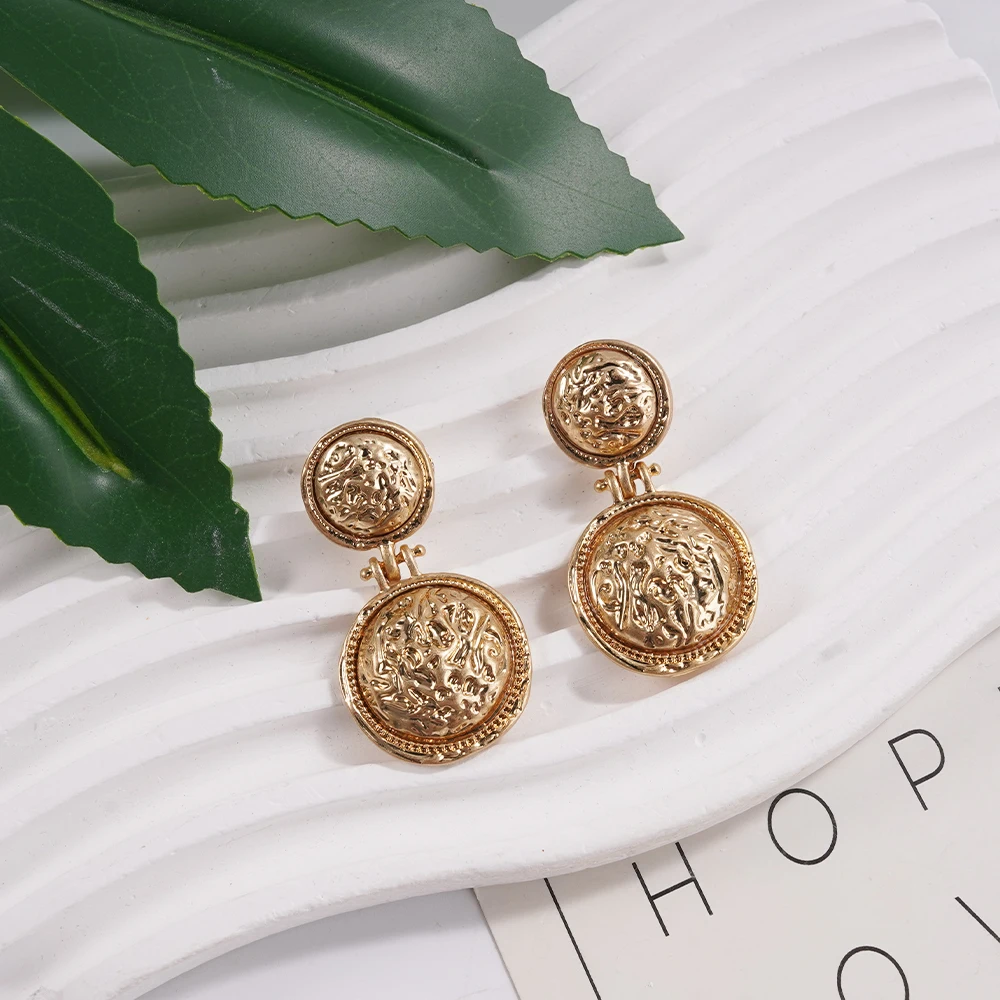 Retro Luxe Gold Coin Drop Earrings Statement Accessory Ideal For Brunch Date Stylish Outfits To Add Bold Charm With Textured Metal & Coin Details