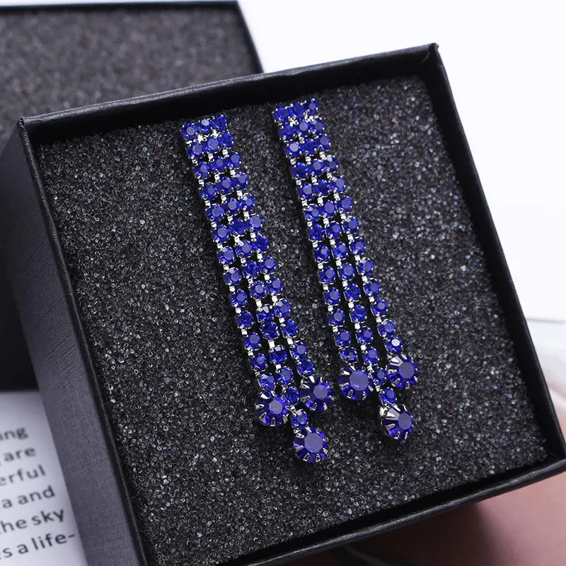 Statement Earrings 2019 White Blue Crystal Earrings For Women Long Luxury Wedding Bridal Rhinestone Earrings Tassel Boho Jewelry