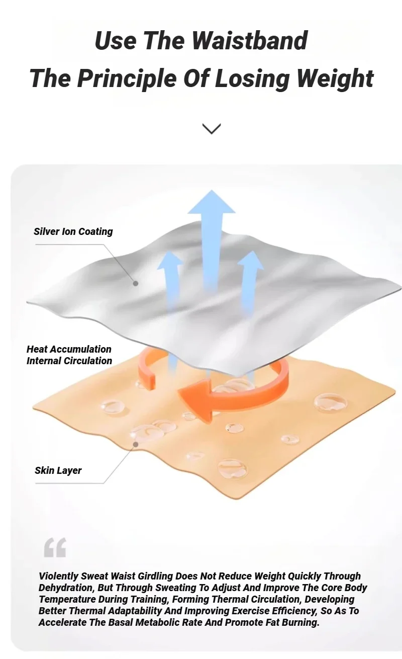 Violently Sweat Waist Girdling Does Not Reduce Weight Quickly Through Dehydration, But Through Sweating To Adjust And lmprove The Core Body Temperature During Training, Forming Thermal Circulation, Developing Better Thermal Adaptability And lmproving Exercise Efficiency, So As To Accelerate The Basal Metabolic Rate And Promote Fat Burning.